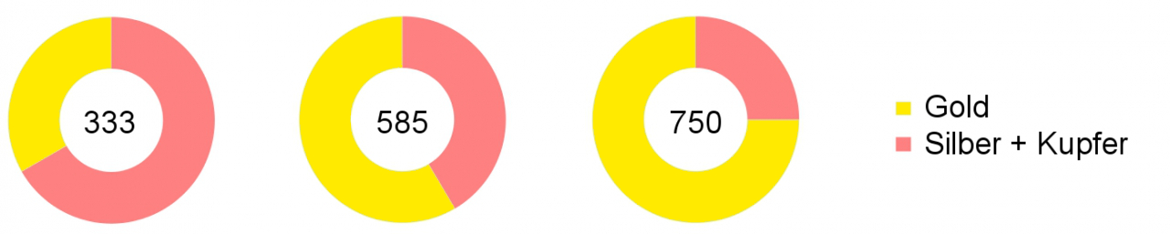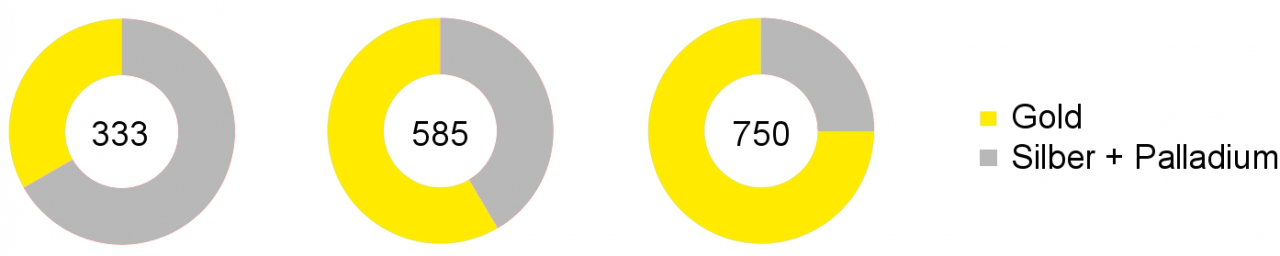Für viele heiratswillige Paare wird sich die Frage des Goldgehaltes stellen. Der Goldanteil ist von der Menge der Beimischung des reinen Feingoldes abhängig.